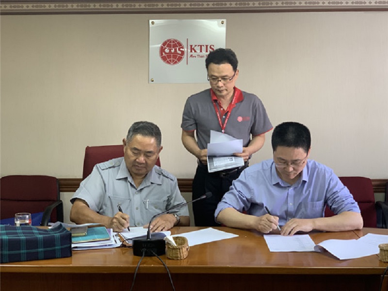 泰國(guó)KTIS集團(tuán)董事長(zhǎng)和浙江歐亞輕工裝備制造有限公司董事長(zhǎng)共同在合同上簽字。