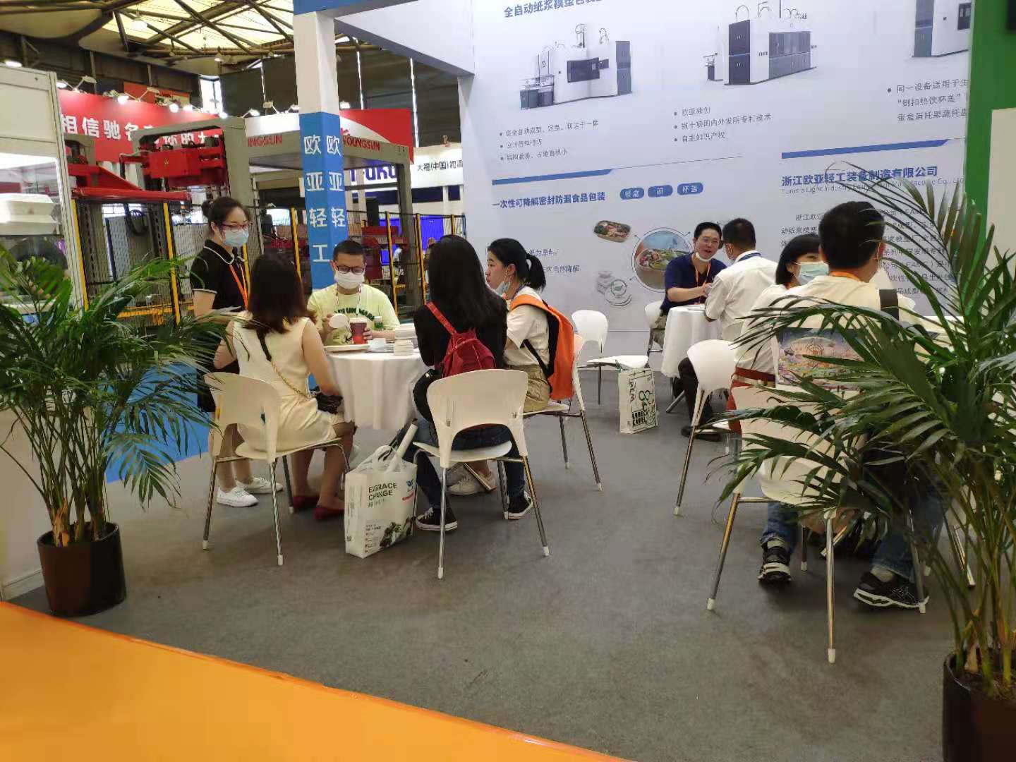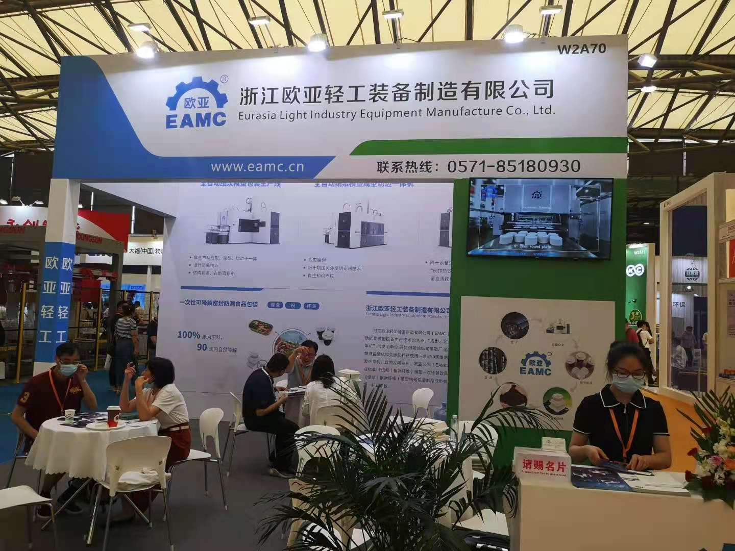 7月14日至16日,2021中國包裝容器展在上海新國際博覽中心舉行,iPackCon中國包裝容器展覽會是國內專業(yè)的全品種包裝容器專業(yè)展示平臺,集中展示紙、塑料、金屬、玻璃等材質包裝容器,創(chuàng)新包裝設計,包裝發(fā)展趨勢以及整體包裝解決方案。隨著國際國內禁塑料工作的推進,可完全自然降解的植物纖維模塑制品在包裝領域的地位凸顯。參加本次會展的有國內植物纖維(紙漿)模塑制品制造商、設備制造商、助劑供應商。歐亞輕工(EAMC)參加了本次會展,展會上展出了EAMC“成型、定型、切邊、打孔”一體機和EAMC紙漿模塑杯蓋生產(chǎn)技術。